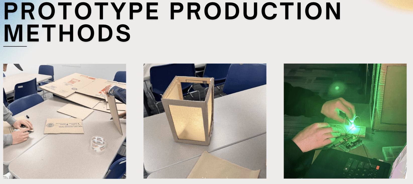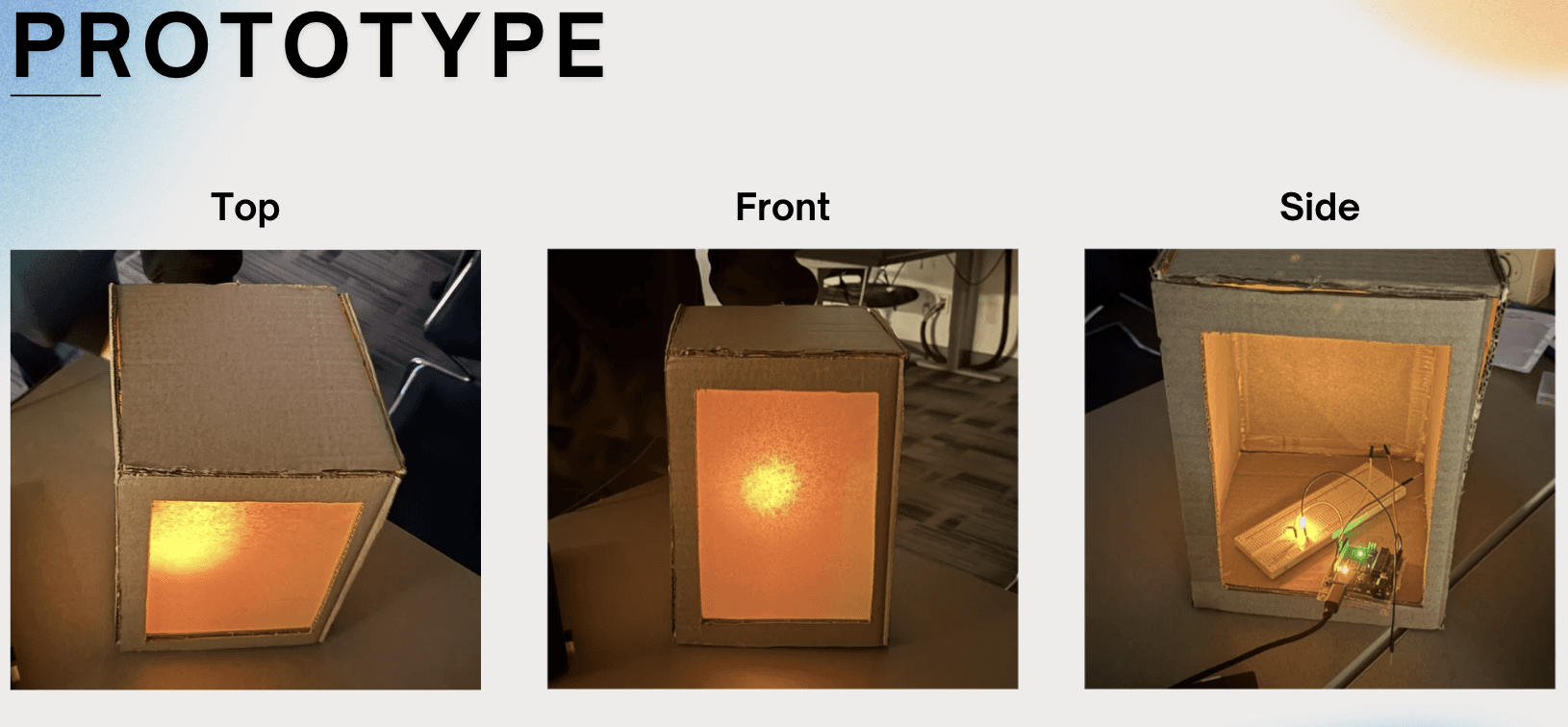 Most of our challenges were technical, and pretty much all of them came from the Arduino side. Getting the code to read the sensor properly and translate that into a smooth brightness change took a lot more trial and error than we expected. The cardboard frame also gave us trouble because it was not very sturdy and it made the lantern look more like a school project than a real product.